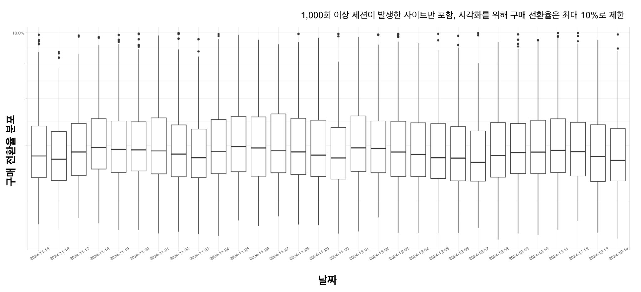 [그림 3: 사이트별 일별 구매 전환율 분포]