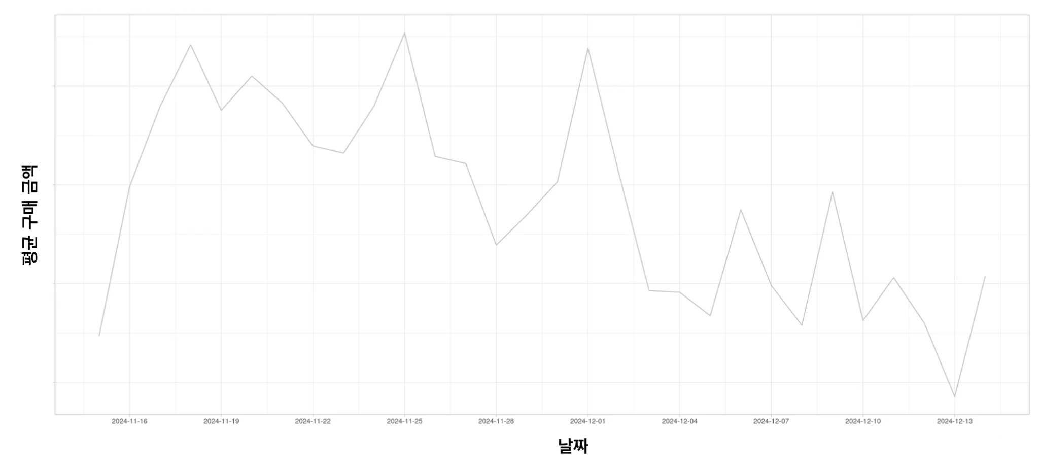 - 평균 구매 금액이 가장 높았던 시기: 11월 18일, 25일, 12월 1일